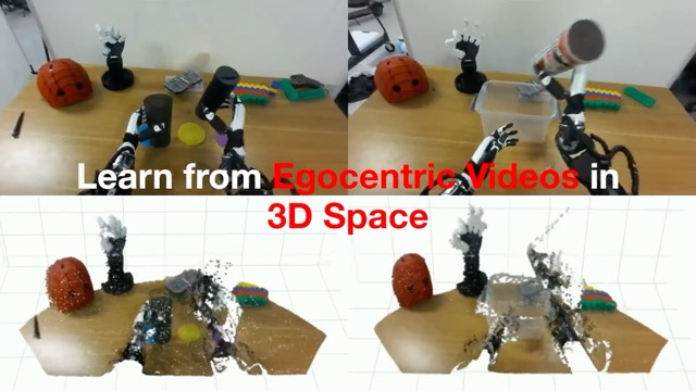 Egocentric human demonstrations as a data source for humanoid manipulation.